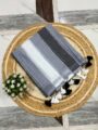 • Design Details: The saree features a classic striped pattern in a sophisticated monochromatic palette of light grey, charcoal, and crisp white. This timeless design makes it incredibly easy to pair with various blouses and accessories. The pallu is adorned with stylish black and white tassels, adding a modern, charming finish.